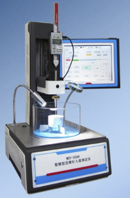JN1005C型 ,智能沥青针入度测定仪,符合GB/T 4509、JTG E20/T0604等标准,主要用于在规定载荷、时间及温度条件下,标准沥青针垂直穿入沥青标准试样的深度测定(沥靑针入度,单位为1/10MM),本智能沥青针入度测定仪由调节对针的自动升降机构、电磁释放机制,光源放大观察装置等组成,由工控一体机处理显示针入度值并同步数据输出。