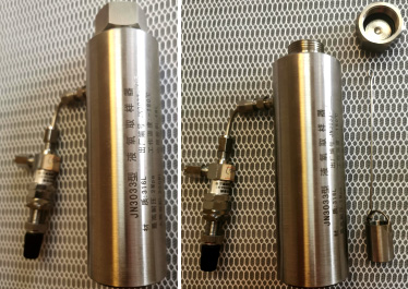本JN3023X型 勺取式液氧取样器,符合:GB/T14599《纯氧、高纯氧和超纯氧》、GJB2040《液氧规范》等标准使用要求,用于色谱仪及其它检测设备的进样程序,该型号液氧取样器为小容积(取样量20ML以下),取样小勺(样品杯)在液氧贮罐、杜瓦瓶等中取样,然后快速放到汽化室并密封,得到气态样;JN3023X型 液氧取样器,通过色谱仪专用精密气体针形阀(进出口为:2MM、3MM、4MM、6MM、8MM、1/8英寸卡套,任选),连接到色谱分析仪,JN3023X型 勺取式液氧取样器,必须专样专用。